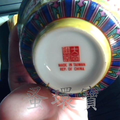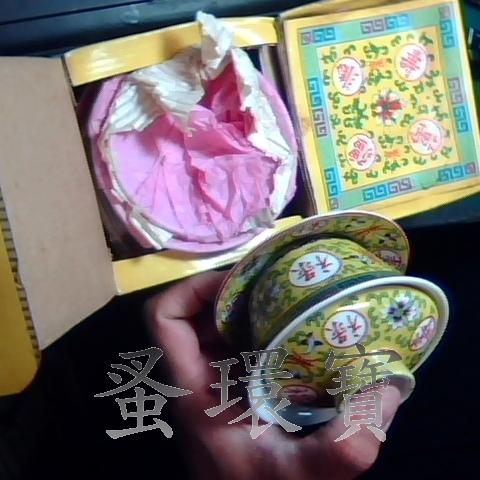大同早期萬壽無疆 福祿壽喜三件式黃五彩蓋杯四方紅印2組 如圖所示