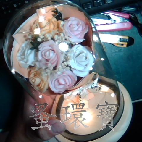 玻璃罩帶燈永生花擺飾 如圖所示